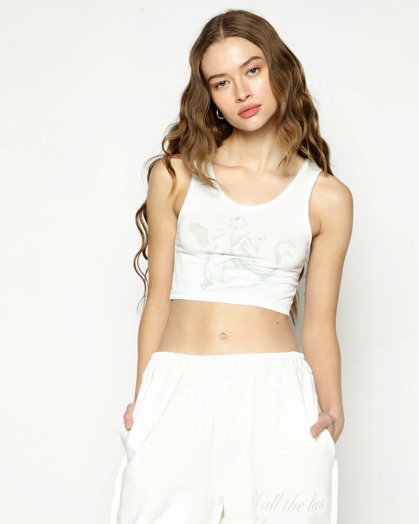 Lightweight, slightly sheer crepe tank top. Scoop neckline, cropped hem, and Ariel x Boys Lie logo patch on the back.Β Made in Los Angeles, California.Β