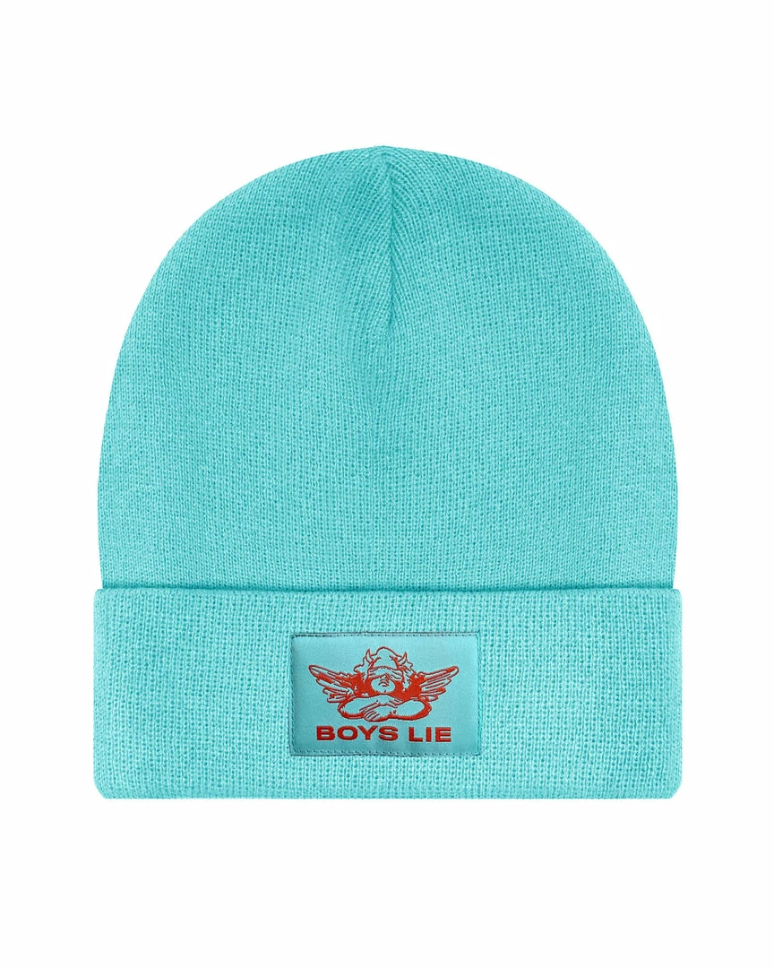 Seafoam greenΒ beanieΒ with seafoam Boys Lie logo patch.