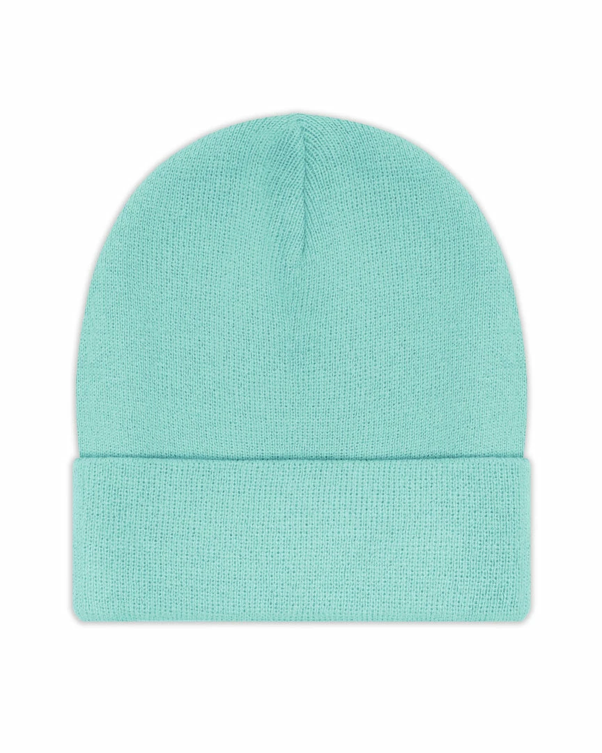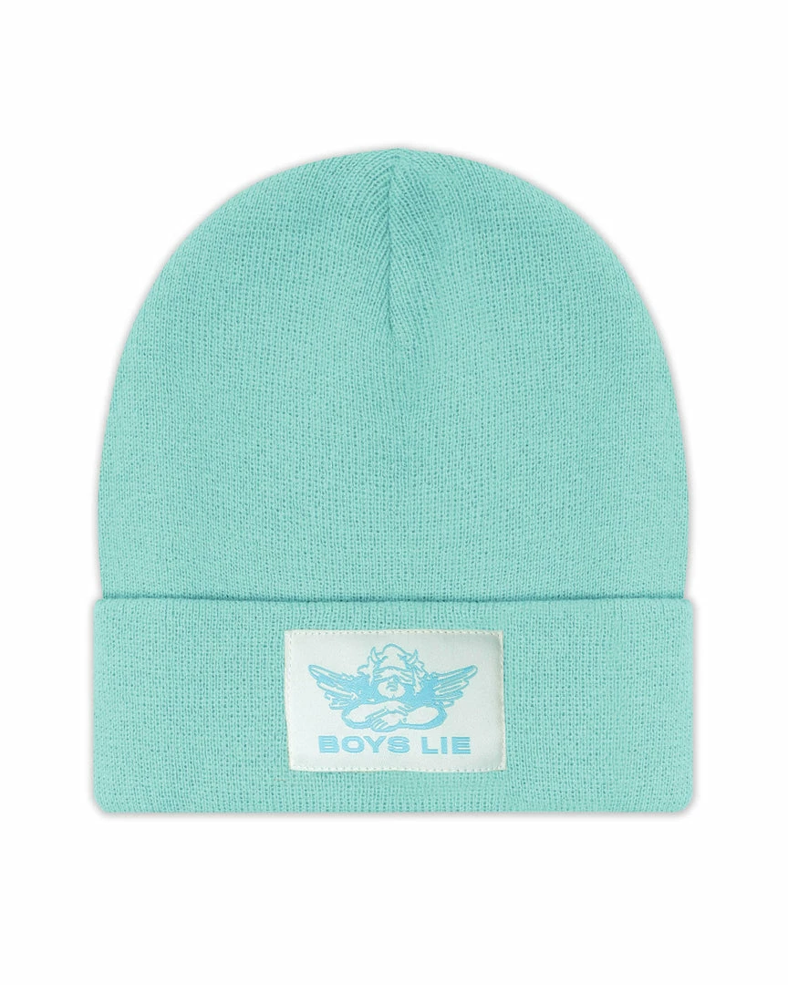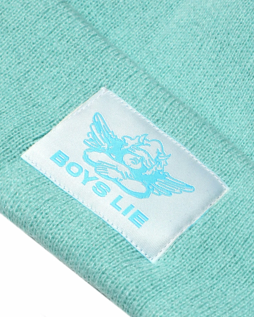Deep seafoamΒ beanieΒ with monochromatic seafoam Boys Lie logo patch.