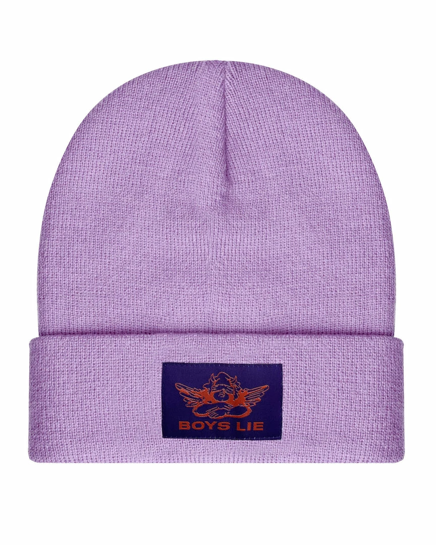 Light purple beanieΒ with purple Boys Lie logo patch.