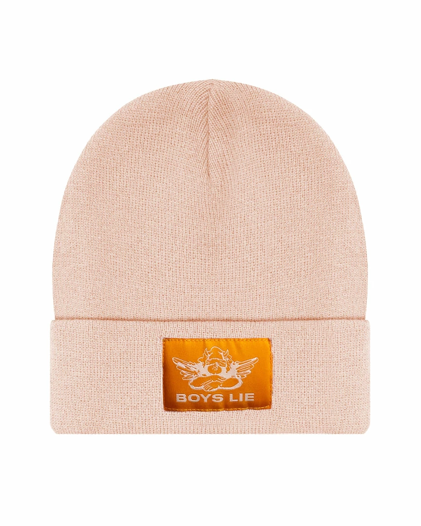 OrangeΒ beanieΒ with orange Boys Lie logo patch.