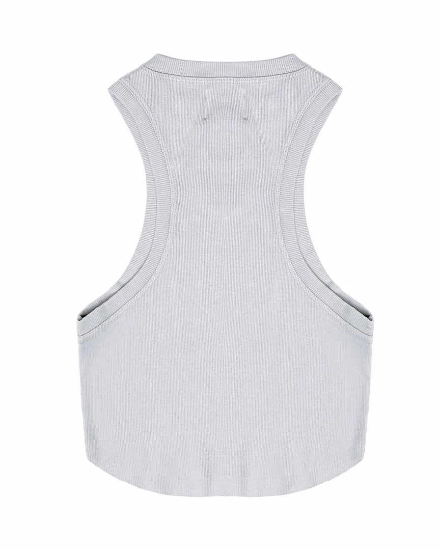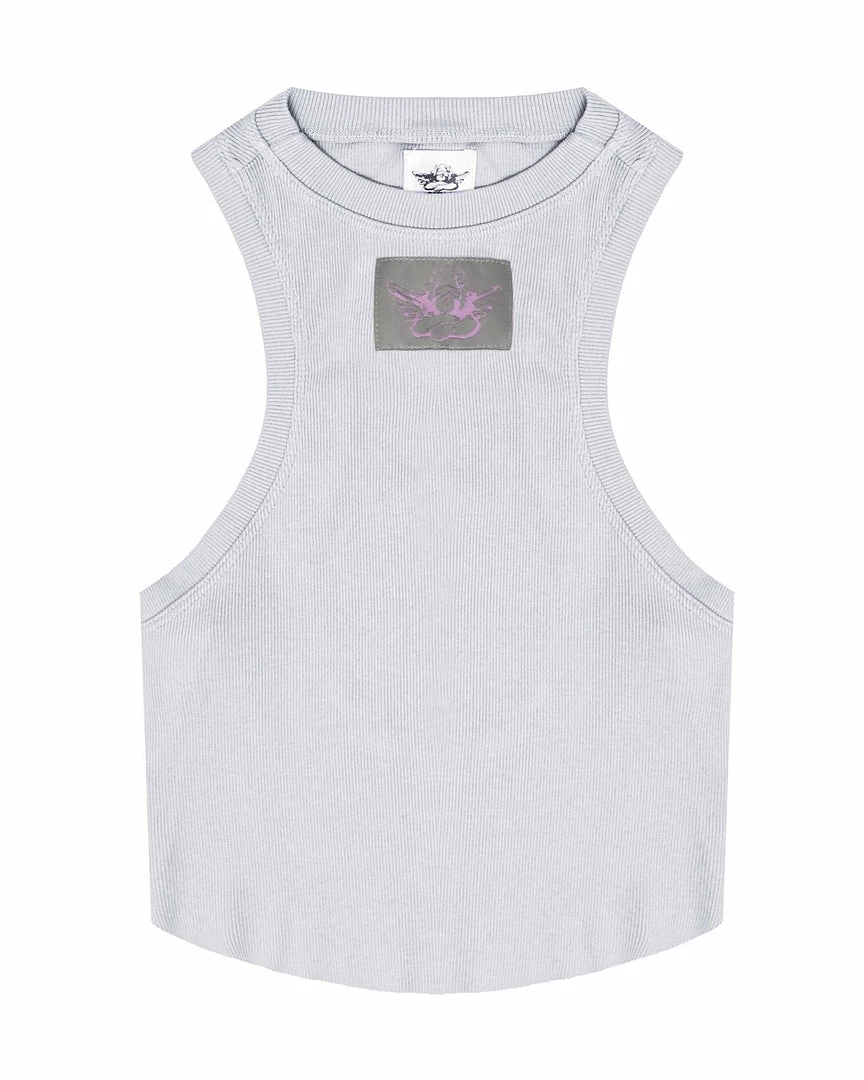 Soft, stretchy ribbed tank in lavender. Curved hem with a raw edge, racerback neckline, and Boys Lie logo patch.Β