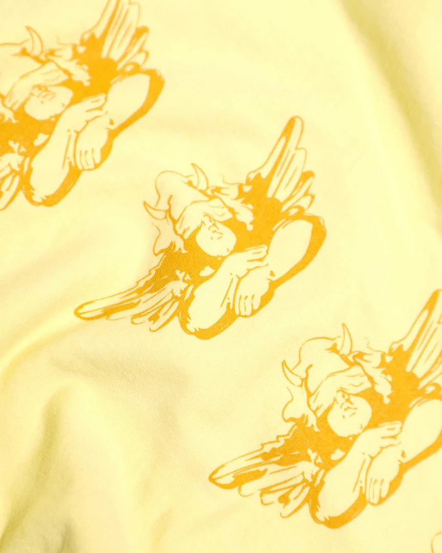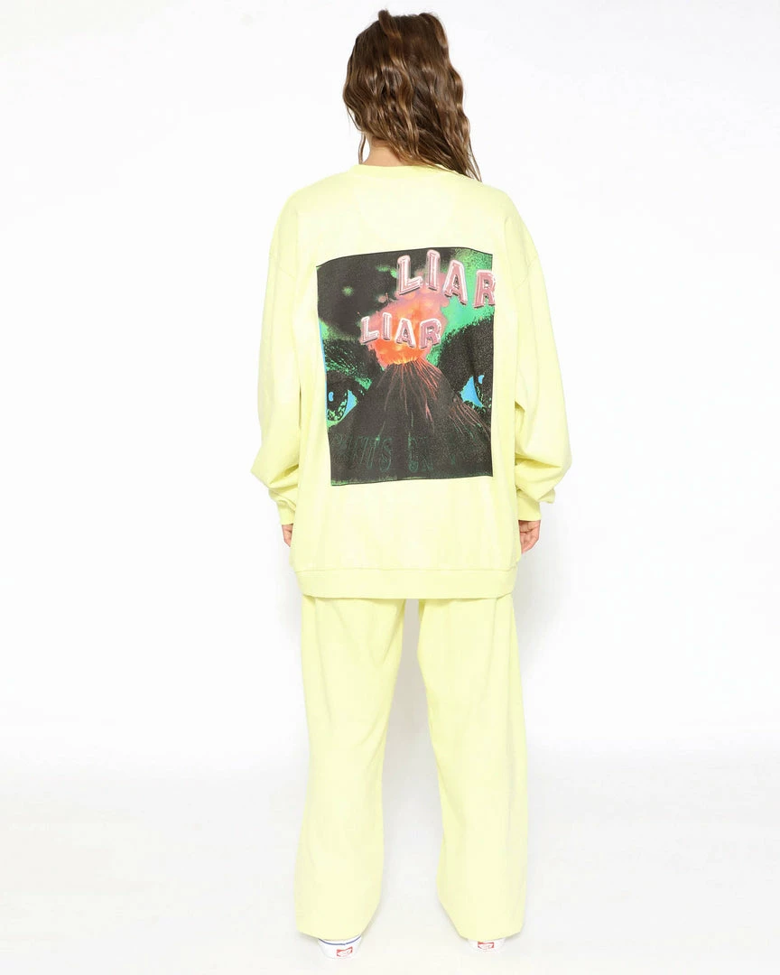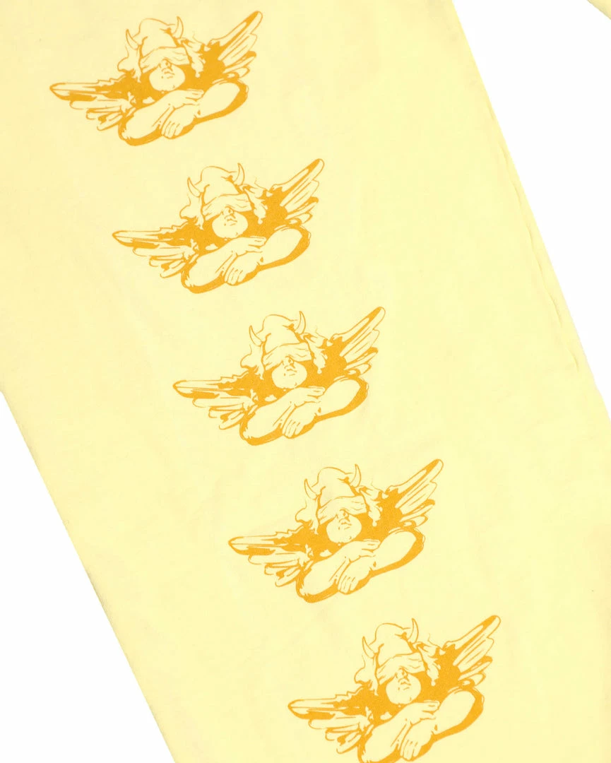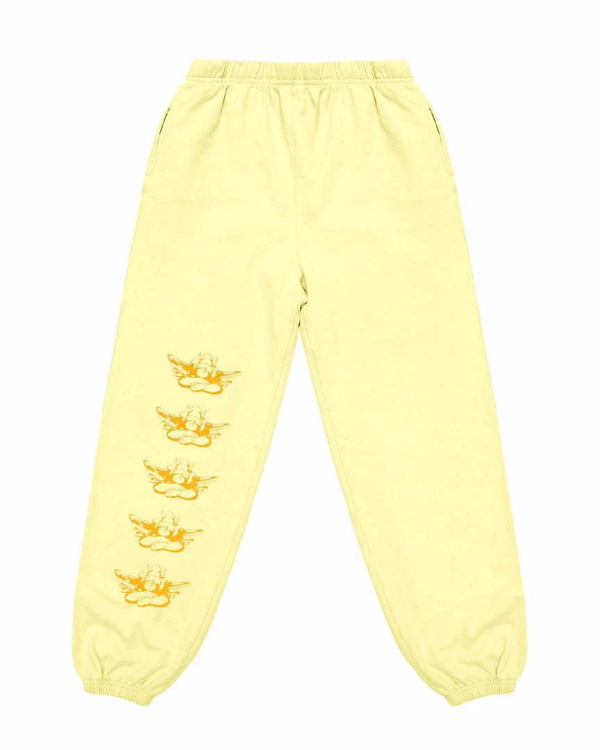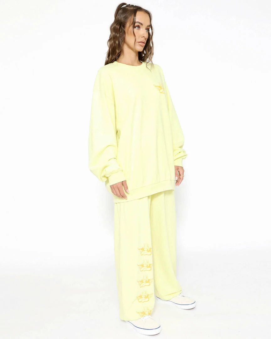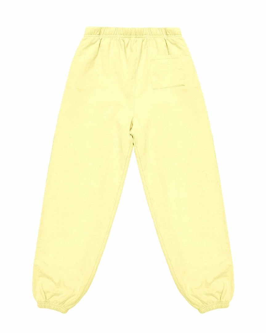 Lightweight fleece fabric in light yellow.Β Oversized high rise sweatpants with back and side pockets, elastic waistband and cuffs.Β